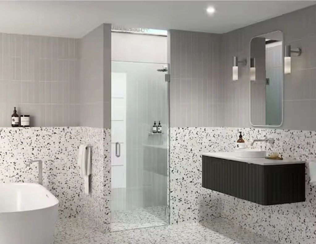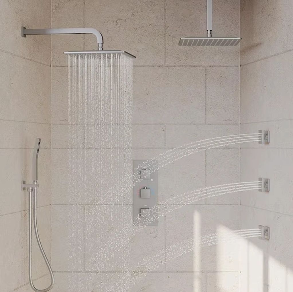 This option offers a double rain head option for sharing a shower. It also has the other body spray options for showering solo.